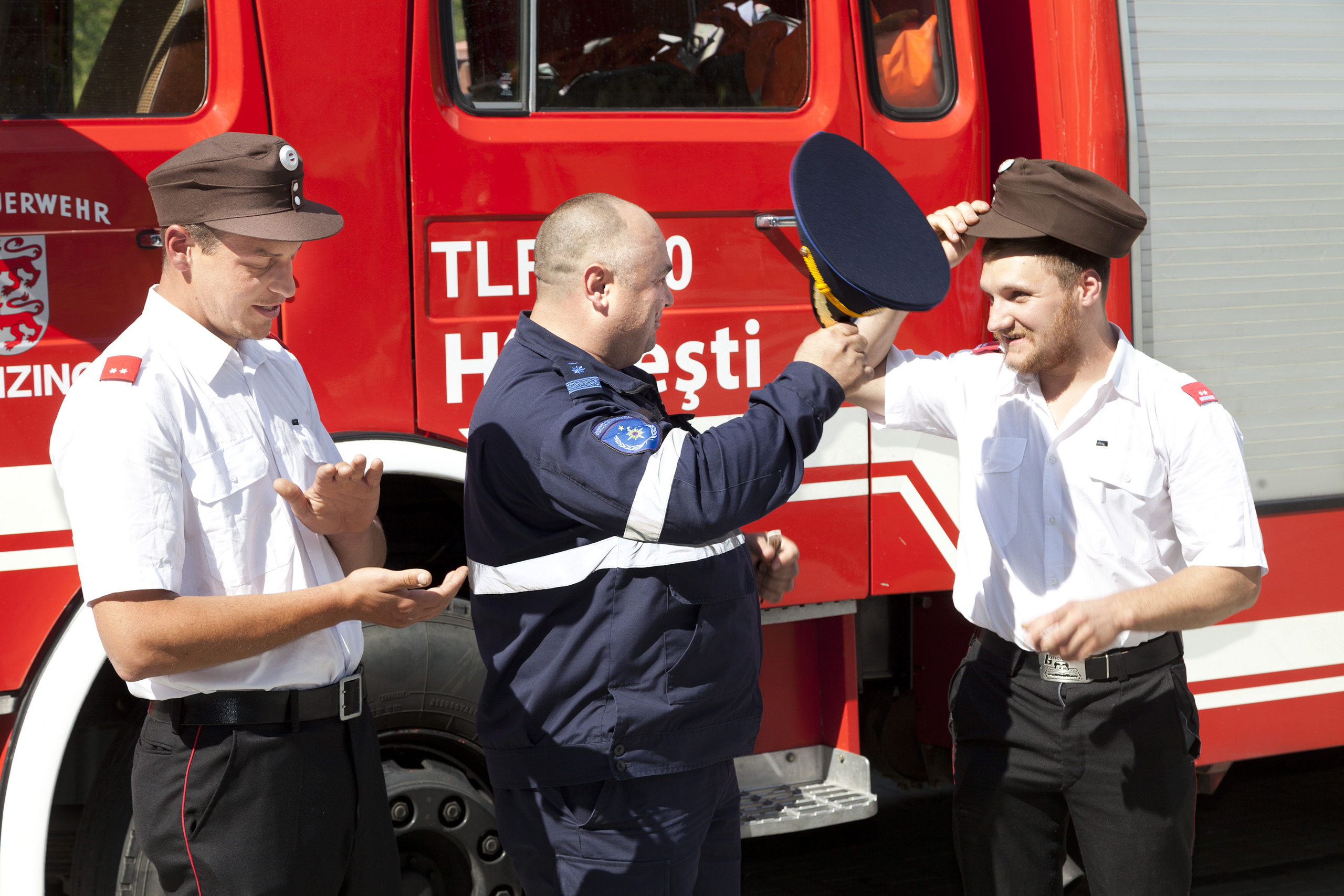 Moldawien Hilfsprojekt 3. bis 11.6.2016 Feuerwehr Hilfsprojekt Pater Georg Sporschill, im Bild Fahrt ueber Burgenland nach Hosmann, Rumaenien. Im Bild : Fahrt von Hosmann nach Chisinau, Uebergabe der Ahrzeuge, im Bild: Hauptuebergabe aller Fahrzeuge bei der Feuerwehrzentrale in Chisinau